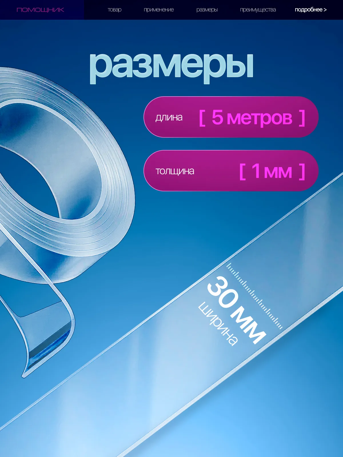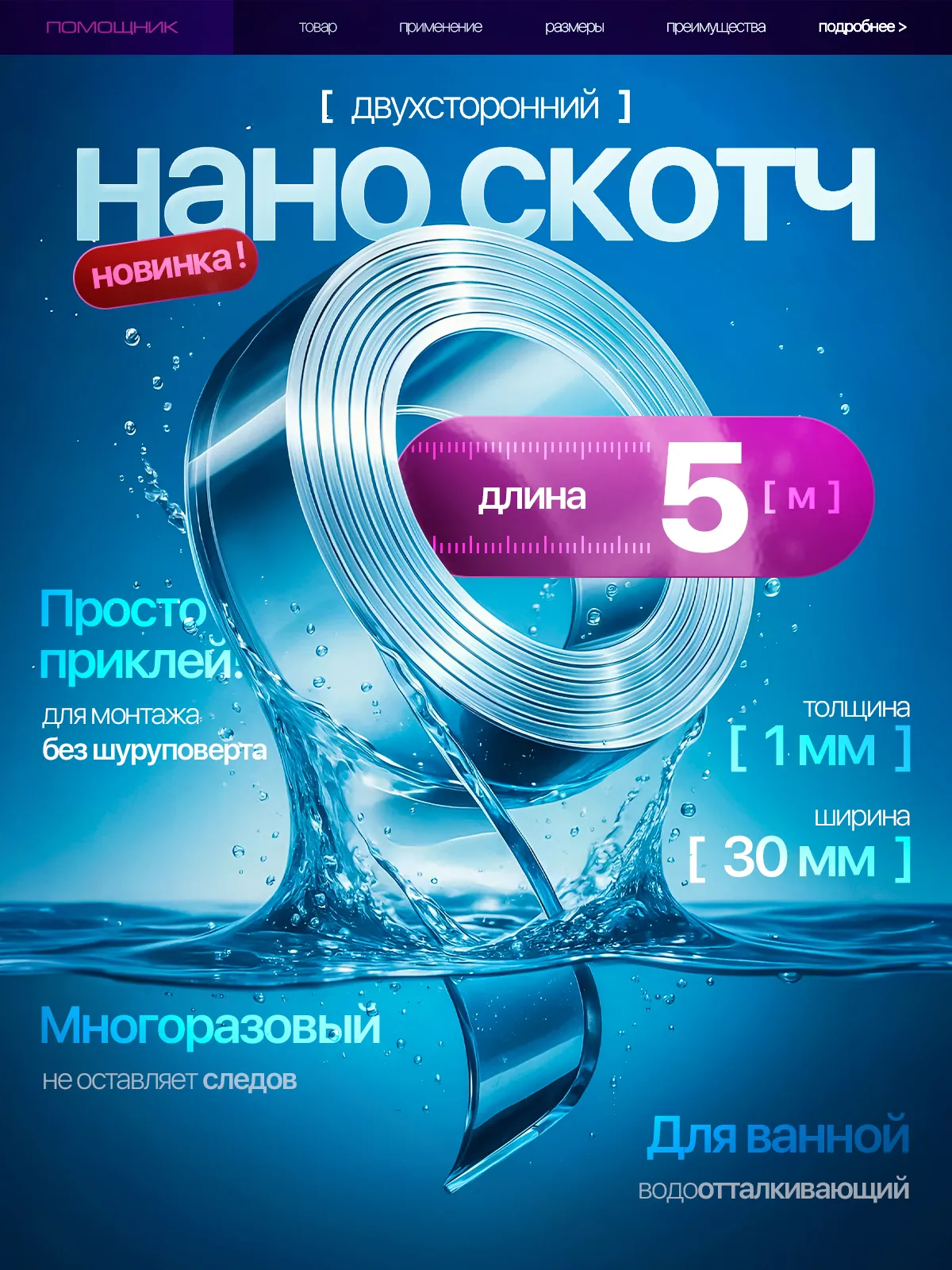Нано скотч двусторонний 5 метров — это инновационное решение для крепления любых предметов без гвоздей, дрели и жидких гвоздей. Прозрачная суперсильная нано-лента шириной 30 мм обеспечивает максимальную адгезию к стенам, плитке, стеклу, дереву, металлу и пластику. Многоразовый скотч легко моется и не оставляет следов при снятии. Идеально подходит для дома, офиса и гаража: крепит полки, коврики, декор, автомобильные аксессуары и тяжёлые предметы. Забудьте о сверлении и испорченных поверхностях!