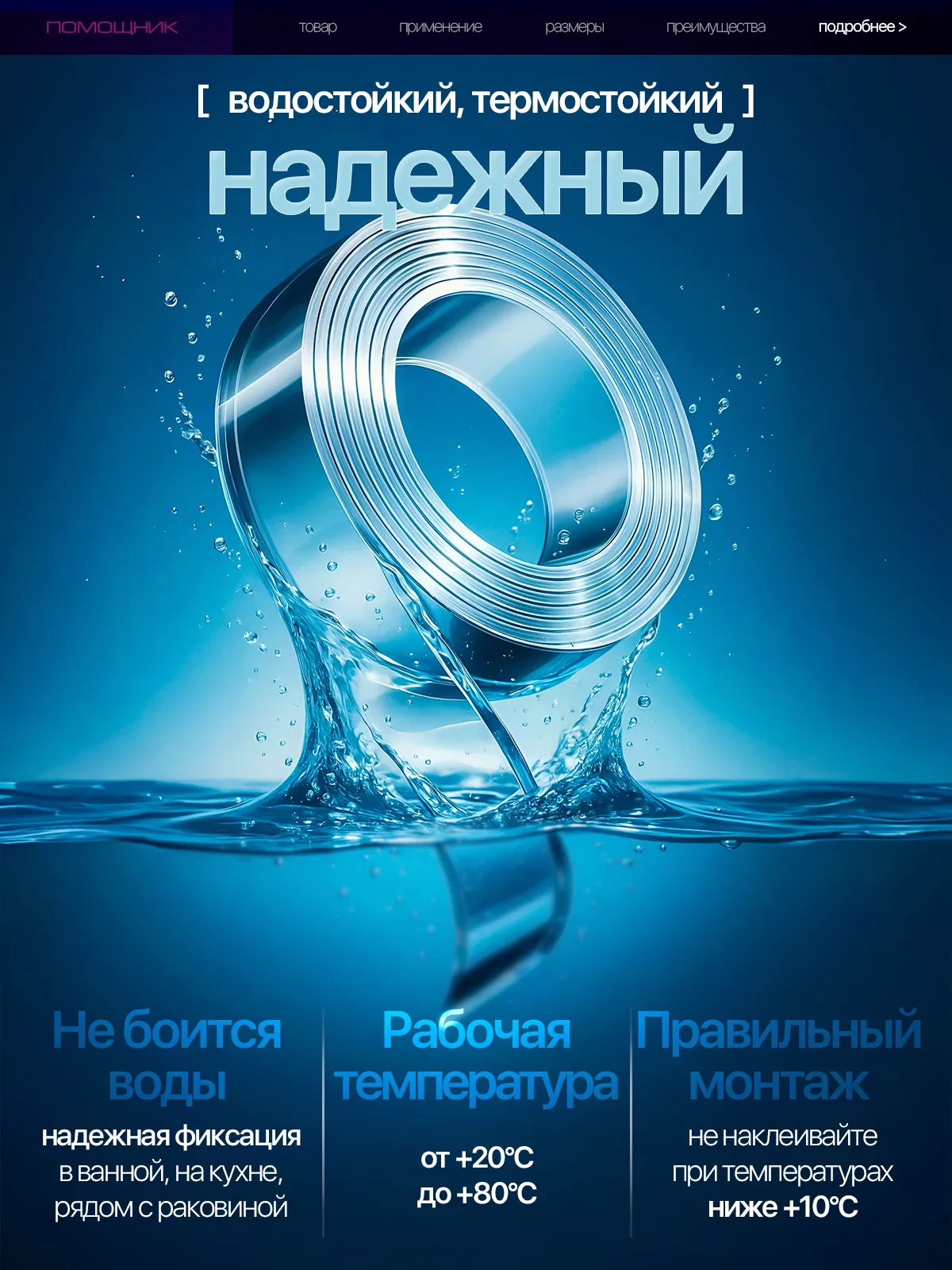 Это просто спасение для квартиры! Повесила на кухне тяжёлую навесную полку с банками — держится идеально уже полгода. Скотч абсолютно незаметен, стену сверлить не пришлось. А когда снимала временный держатель для ванной — ни следа, ни липкости. Обязательно куплю ещё, это лучший скотч из всех, что я пробовала.